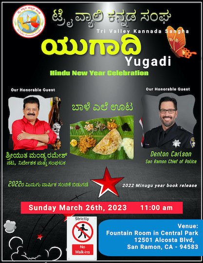 TVKS is celebrating Ugadi, the new year per Hindu calendar, on April 21, 2024 from 11 am to 3 pm at Dougherty Station Community Center,Bollinger Canyon Rd, San Ramon.