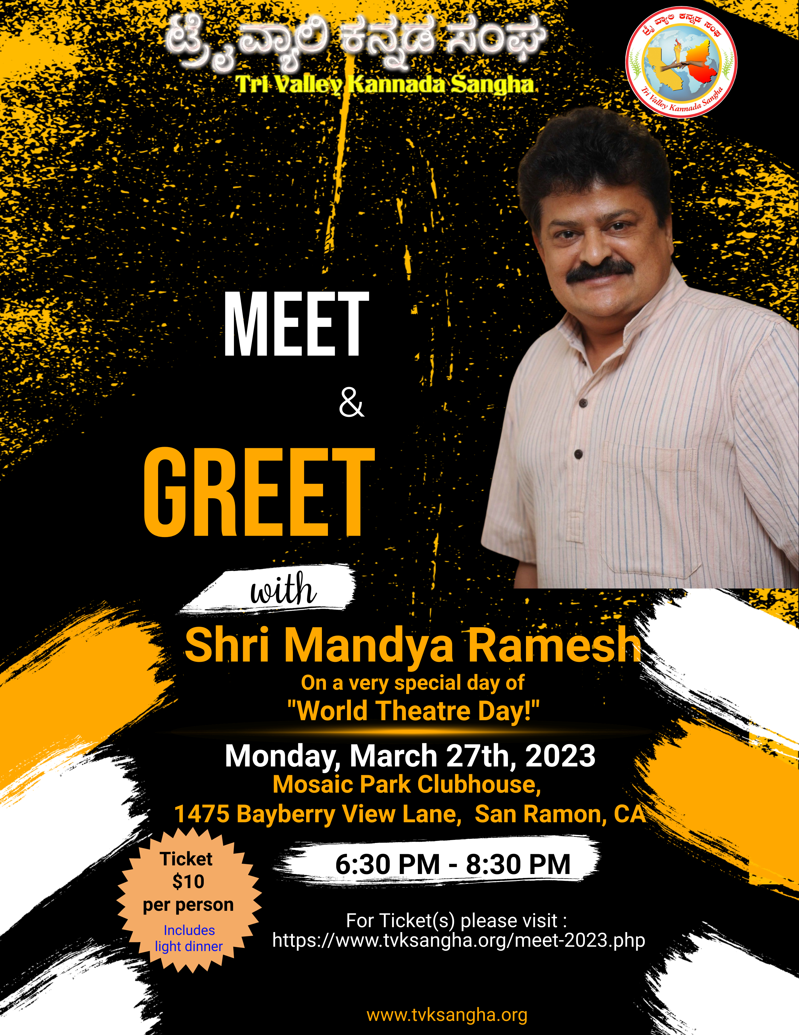 Event Tickets (includes entry, lunch, coffee and dinner) can be purchased at: https://www.tvksangha.org/Rajyotsava2022-tickets.php