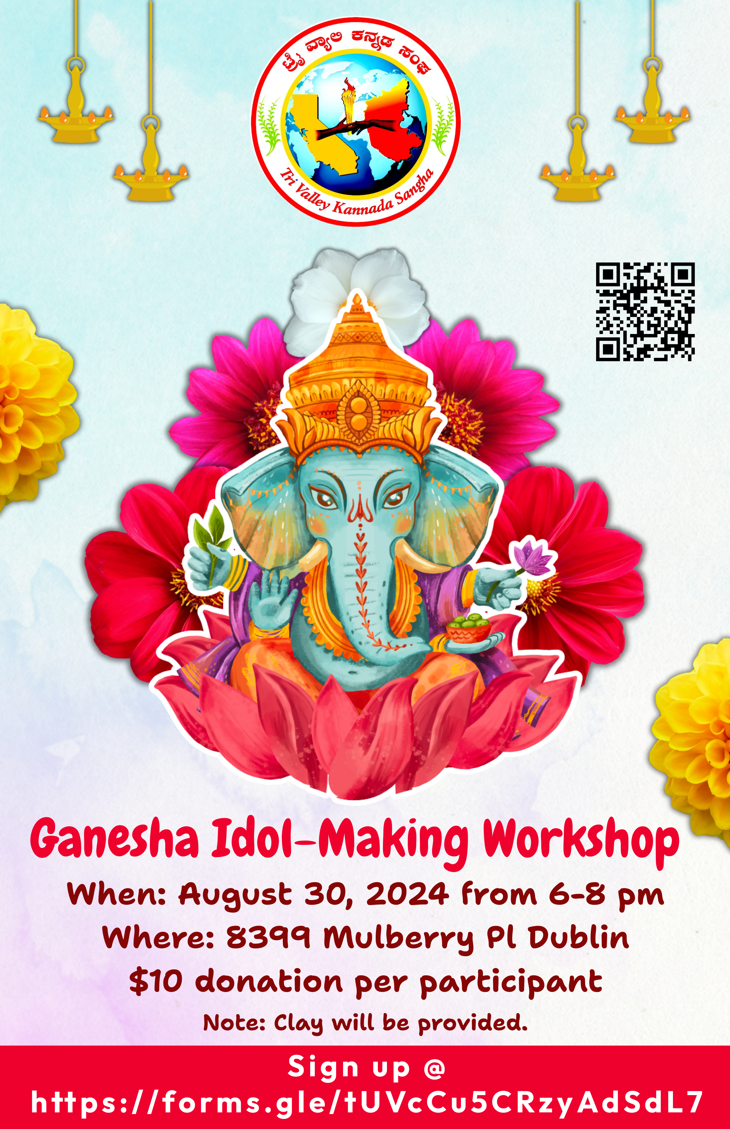 Here’s a wonderful opportunity for you and your kids to learn how to make Ganesha idols using clay. TVKS is organizing a hands-on workshop on August 30, 2024 from 6-9 PM.