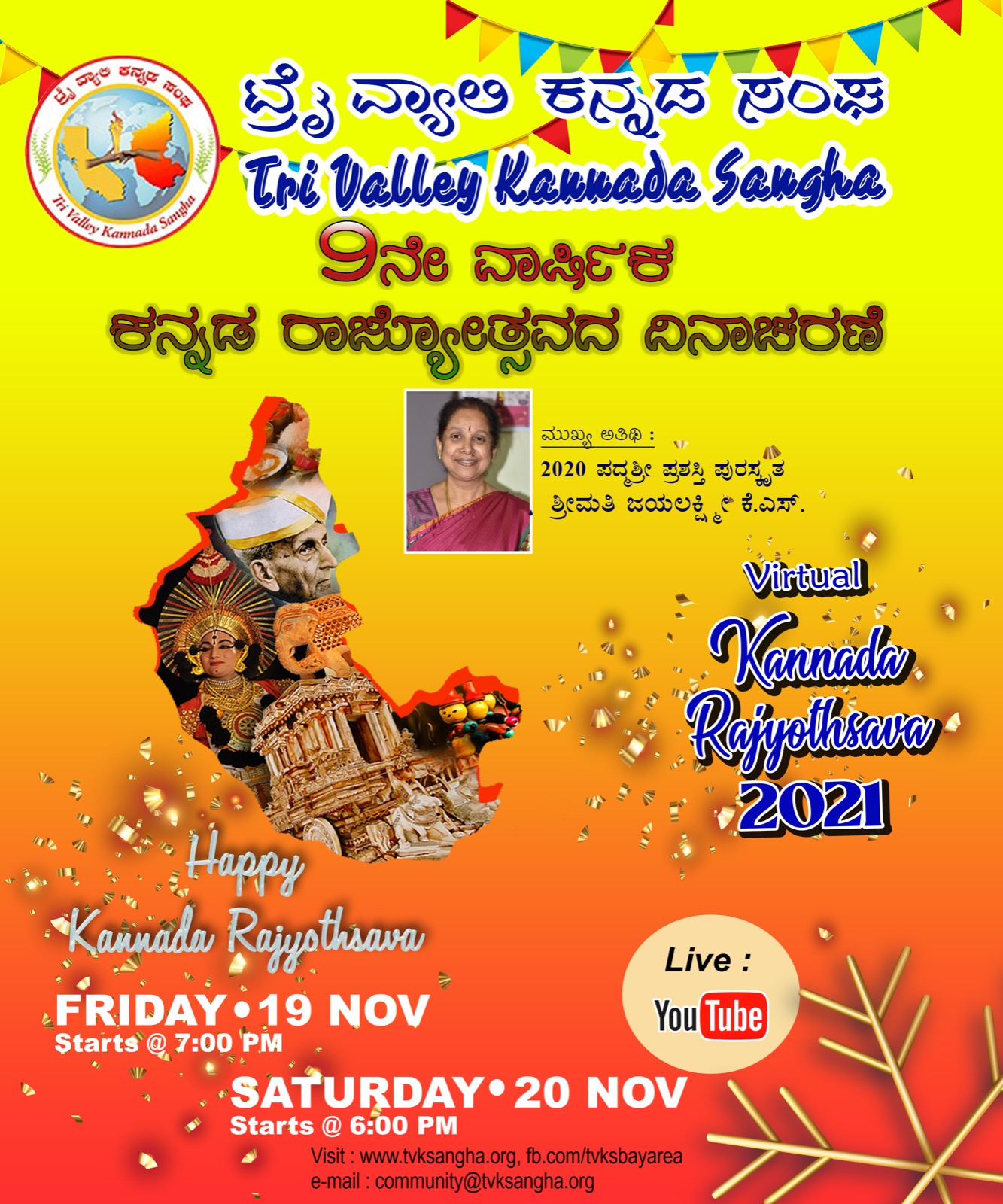 Tri Valley Kannada Sangha (TVKS) is celebrating Kannada Rajyothsava on November 16th between 11 am and 8 pm at Dougherty Valley High School (DVHS) in San Ramon.