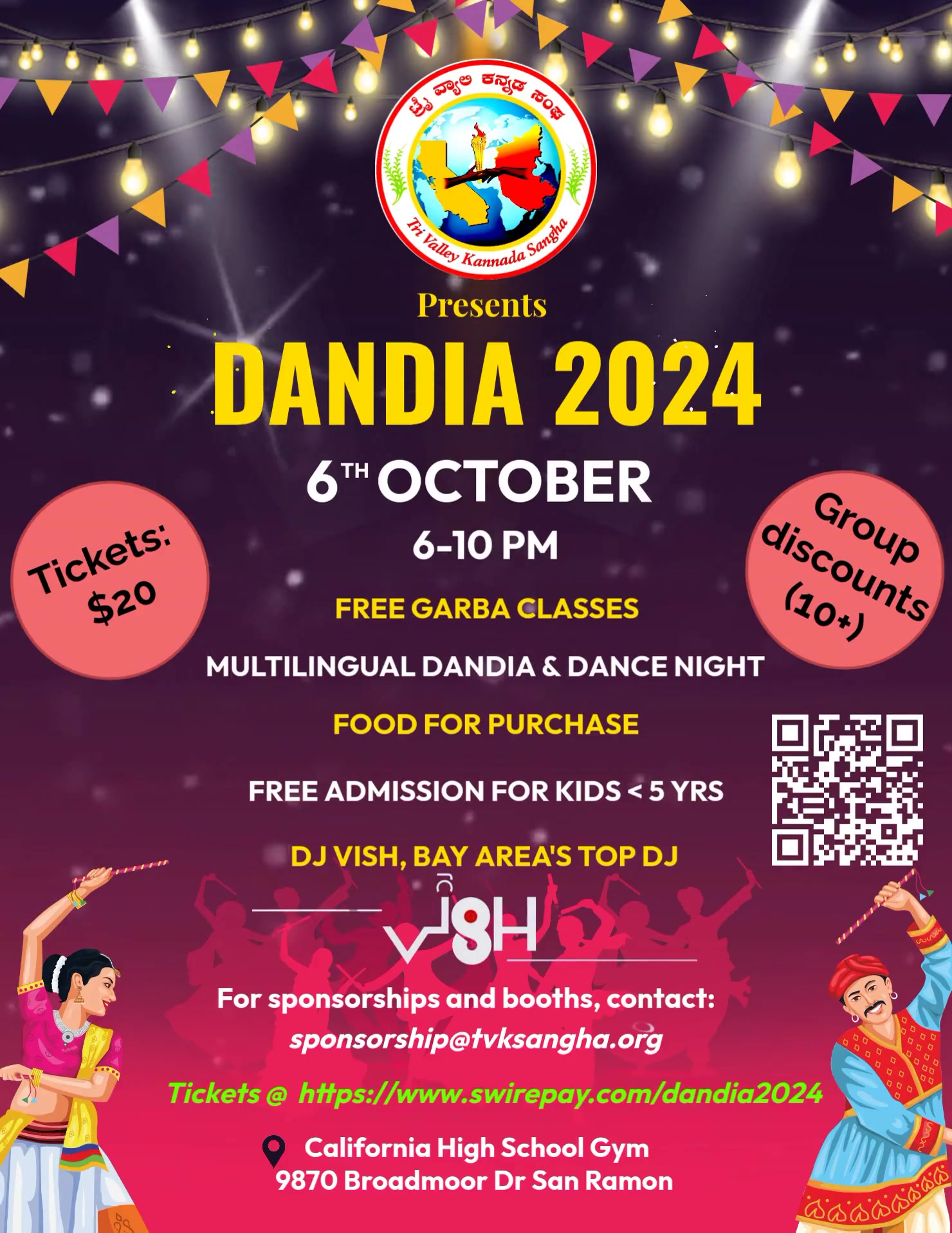 Tri Valley Kannada Sangha is delighted to host its annual multilingual, laser and fog Dandia event on October 6, 2024 at California High School in San Ramon.